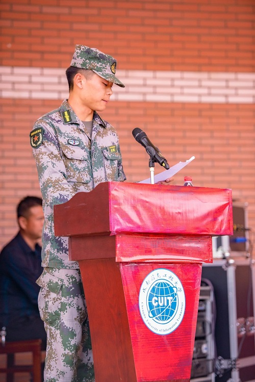 教官代表在发言中表示,全体教官将认真履行职责,因材施教、文明施教,严格训练,严格要求,发扬不怕苦、不怕累的精神,以良好的军人形象、过硬的军事本领引导大家提高政治思想觉悟,增强集体主义精神和纪律观念,磨练意志,培养吃苦耐劳的精神,增强国防观念,提高同学们的军事理论水平和技能。
