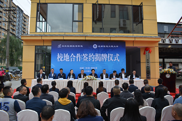 【本网讯】10月14日,我校与双流区西航港街道校地合作签约揭牌仪式在西航港街道近都社区举行。学校副校长肖月强,西航港街道党工委书记胡劲松,党工委委员、人大工委主任张海霞参加仪式。