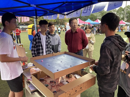 期间,周激流一行来到第一田径场,看望了参加校团委主办的社团迎新游园会“青春young成信”的同学们,并与大家进行了互动交流。