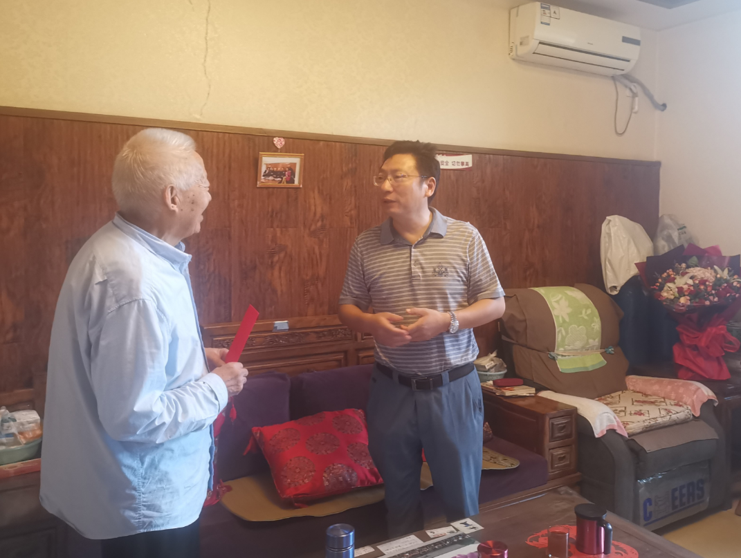 周激流一行看望慰问了离退休教师、曾参加过抗日战争的老同志张玉昆,关切询问老人的身体和生活情况并送上了鲜花和慰问金。年近百岁的张玉昆参加革命时曾是个骑兵,说起那段战火纷飞的岁月,老人记忆犹新。周激流谈到,感谢老战士、老同志们为国家稳定、人民幸福生活和学校发展作出的贡献,祝福老人生活愉快、健康长寿,并提前送上了教师节祝福。