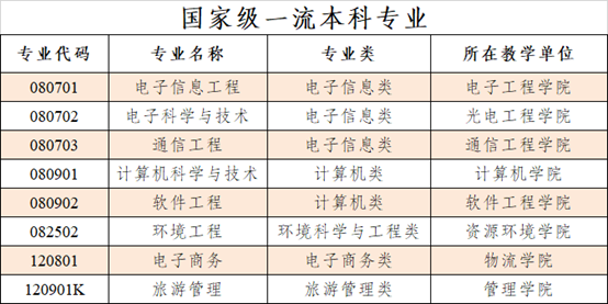 我校入选首批国家级一流本科专业建设点的8个专业是:电子信息工程、电子科学与技术、通信工程 、计算机科学与技术、软件工程 、环境工程、电子商务、旅游管理。