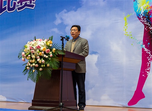 马洪江代表学校对来自全省各兄弟高校的领导、参赛选手和裁判员表示热烈欢迎。他谈到,本届比赛是我省高校教育系统举办的规模最大、涉及师生面最广的一次健美操、啦啦操、体育舞蹈的体育赛事。他希望广大参赛选手发扬更高、更快、更强的体育精神,团结协作、顽强拼搏,赛出风格、赛出水平、赛出友谊,充分展现出崇尚健康体魄、注重团结协作、不断追求卓越的信念和坚持不懈奋斗的良好风貌。