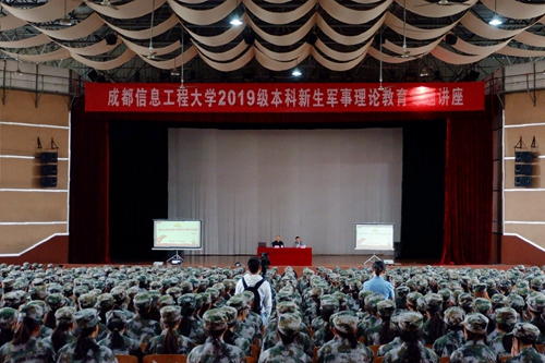 【本网讯】为全面贯彻党的十九大关于“加强全民国防教育”的战略,增强青年学生的国防意识,弘扬爱国主义精神,在迎来第十九个国防教育宣传日之际,为不断提高我校师生的国防安全意识,9月19日上午和下午,学校在两个校区分别举办了2019级新生国防教育讲座。四川省军区老干部大学张建华少将、何洪江少将应邀来校做专题讲座。四川省军区老干部大学副校长、西藏军区原副政委杨双举少将,学校党委宣传部部长陶若铭,党委学生工作部部长龚晓林,副部长陈智勇、冯阳,二级学院党委书记、副书记、新生辅导员、全体军训教官及全校5700余名学生一起认真聆听了讲座。讲座由陶若铭主持。