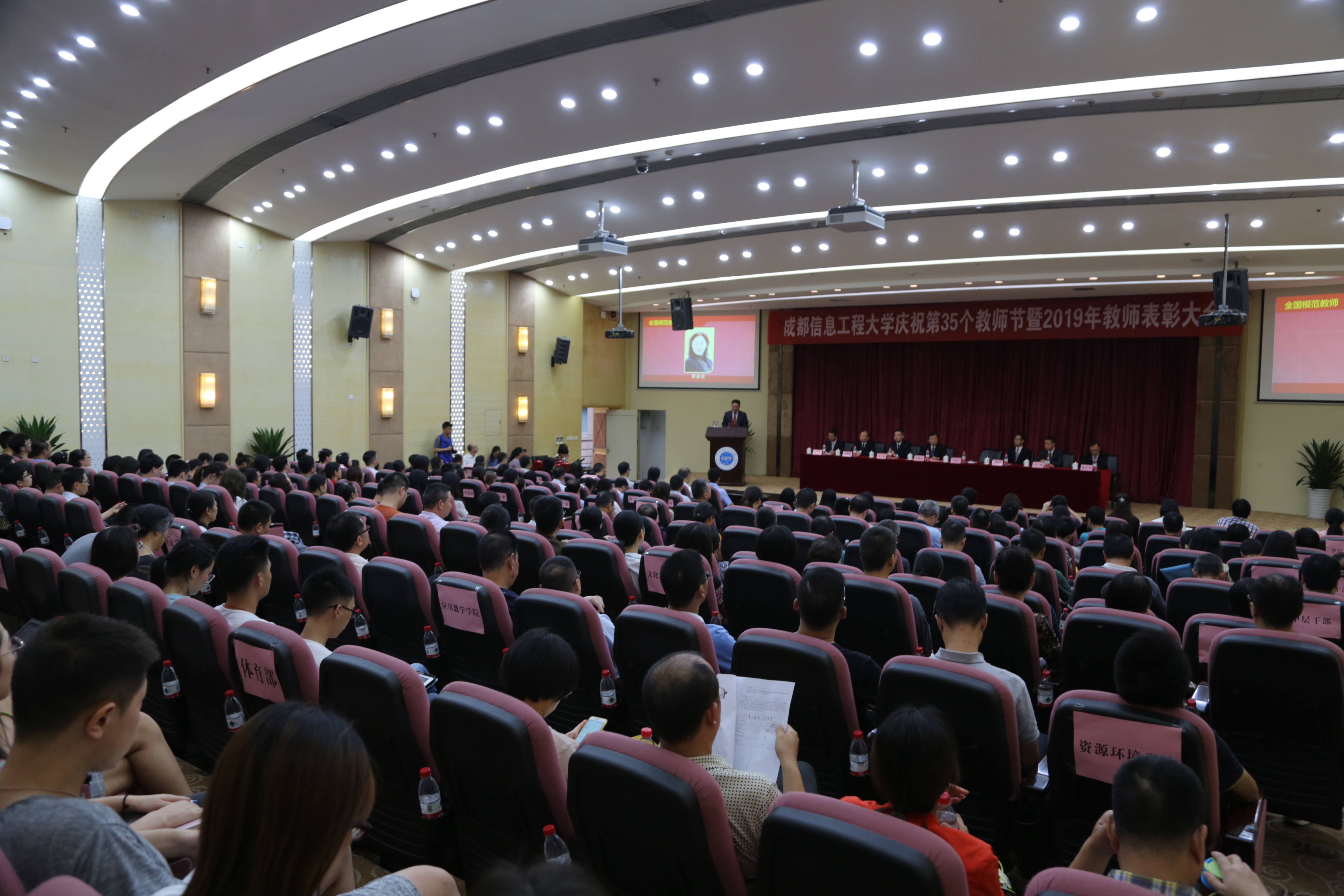 马洪江宣读了表彰事项:刘志红教授获“全国模范教师”称号,周激流教授、唐聃教授分别入选的“创新领军人才”和“科技菁英项目”,舒红平教授、靳立亚教授新增为2018年享受政府特殊津贴专家,肖天贵教授获“四川省教书育人名师”称号,陈功教授被授予四川省特聘专家和成都市特聘专家称号、入选高层次创新创业人才“蓉漂计划”,代曦副教授获“成都市有突出贡献的优秀专家”称号,胡鹏等10名老师获学校第二届“最受学生欢迎教师奖”,蒋守光等9名老师获学校第三届“优秀教师奖”,吴小飞等19名老师获学校第一届“教学质量奖”,陈丹等10名老师获学校第六届“青年教师教学奖”,封凡、张倩、万娟等24名老师获学校第十届“青年教师教学竞赛奖”。马洪江希望受到表彰的教师珍惜荣誉、再接再厉,在今后的工作中取得更新更大成绩;希望全体教职工要以受表彰的教师为榜样,坚守教育初心,牢记教师使命,争做师德表率,在成信大家庭里,同心同德,同向同行,建设更加幸福的家园、创造更加美好的人生。