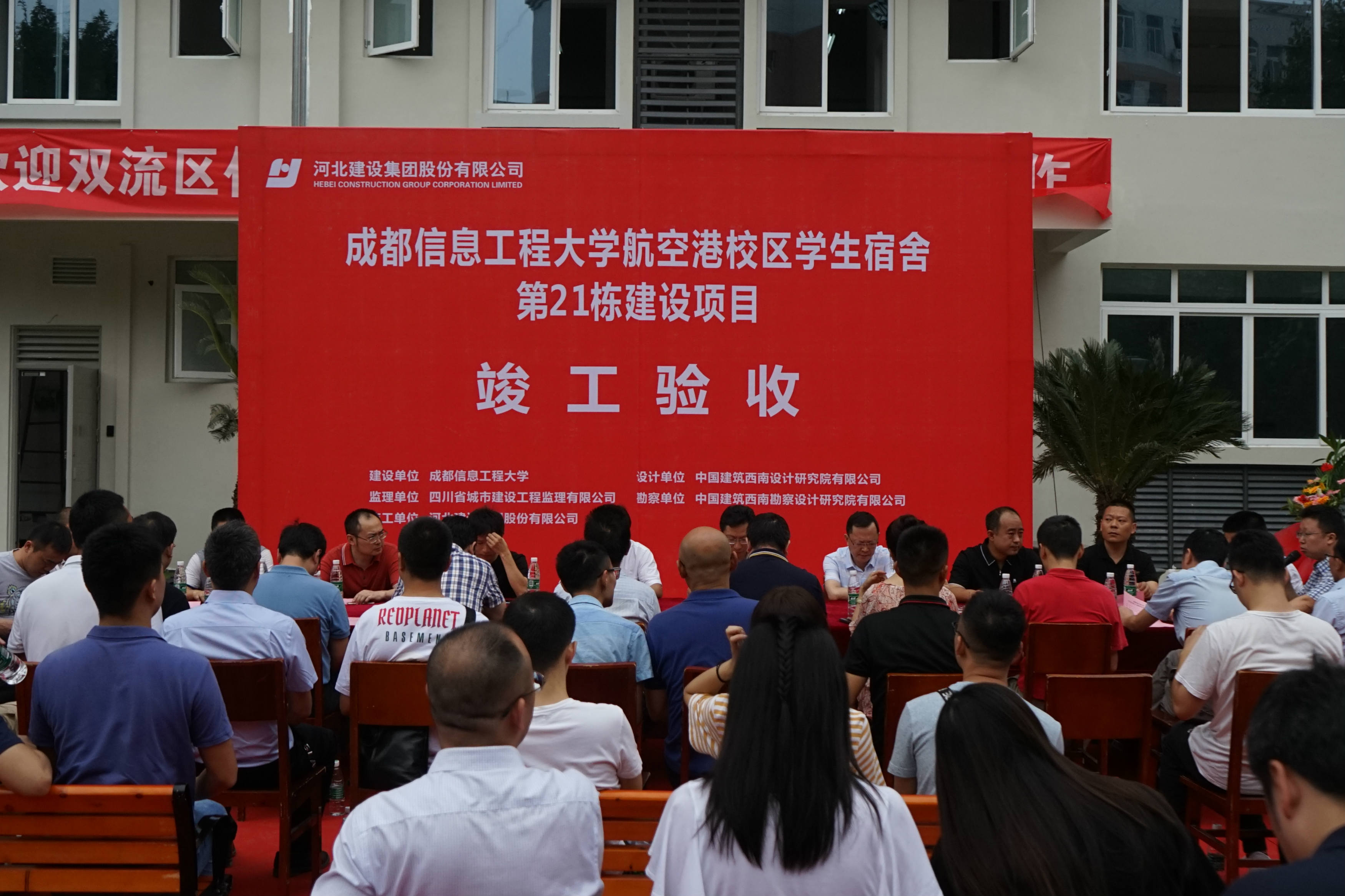 第21栋学生宿舍项目位于航空港校区西北角,规划总建筑面积28000平方米,地上12层,地下1层(局部),建成后将容纳2500名学生学习生活。该项目由中国建筑西南设计院设计、中国建筑西南勘察设计研究院地勘、河北建设集团股份有限公司承建,四川省城市建设工程监理有限公司监理、四川迅达工程咨询公司跟踪审计,于2018年8月29日正式开工建设,2019年8月30日竣工验收。该工程的顺利竣工,将较好改善地我校航空港校区学生住宿条件,提升学校办学实力,为学校改革发展奠定坚实的基础。