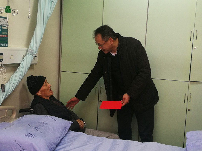 在病房里,余敏明详细询问了老干部老党员王明山、许荣耀、崔淑亭的病情及康复情况、生活情况,他叮嘱老人家保持乐观的心情,安心养病,争取早日康复。余敏明与老同志们亲切交谈,代表学校党政、全体师生送上新春的祝福,并向全体离退休同志致以节日的问候和新春的美好祝愿,感谢全体离退休同志为学校发展建设作出的积极贡献。他要求离退休工作处认真做好服务保障工作,为老同志们安享晚年积极创造条件。
