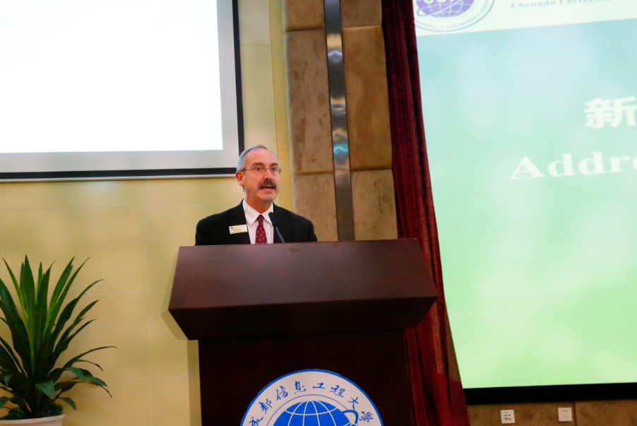 Wayne Jones向学校国际教育周的开幕表示祝贺,介绍了新罕布什尔大学的概况。他谈到,新罕布什尔大学与成信大的友好关系源远流长,双方教师在推动交流合作中作出了积极的贡献。此次国际交流周的举办将进一步促进两校之间的多文化交流。他代表新罕布什尔大学欢迎学校师生赴美国交流与学习。