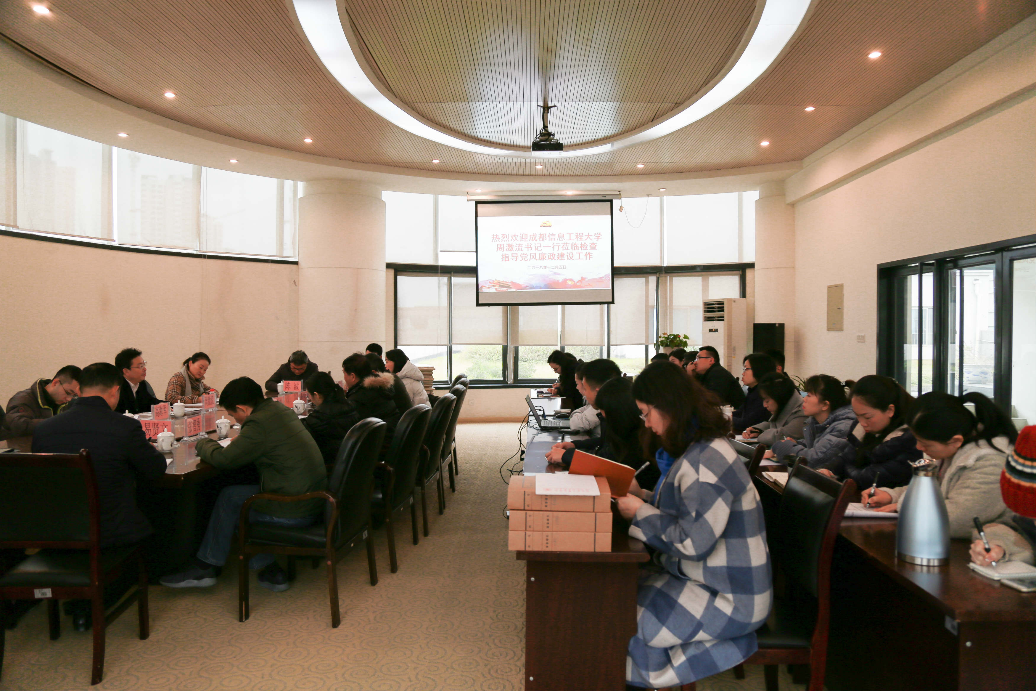 【本网讯】12月5日上午,学校党委书记周激流一行到银杏酒店管理学院检查指导党风廉政建设工作。