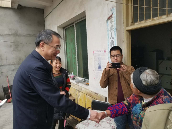 调研期间,余敏明来到兴隆镇贫困老人赵明珍的家中,详细询问了老人的身体和生活情况,向她送去重阳节慰问金及节日祝福,并叮嘱她保重身体,老人对我校一直以来的关心和帮助表示十分感谢。