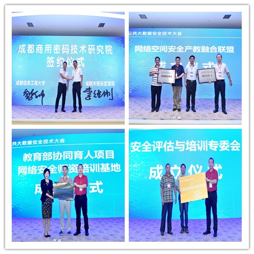 在本次大会上,作为全国首家由地方密码管理局与高校联办的“政、产、学、研、测”合作创新平台——“成都商用密码技术研究院”、北京永信至诚科技股份有限公司与悟空官方网站合作共建的“教育部协同育人项目网络安全师资培训基地”、“四川国讯网络安全信息技术研究院网络空间安全产教融合联盟”和“四川省计算机信息安全行业协会安全评估与培训专委会”也相继在会上成立。