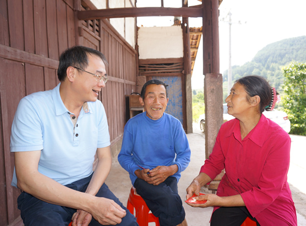余敏明与二龙村贫困户亲切交流