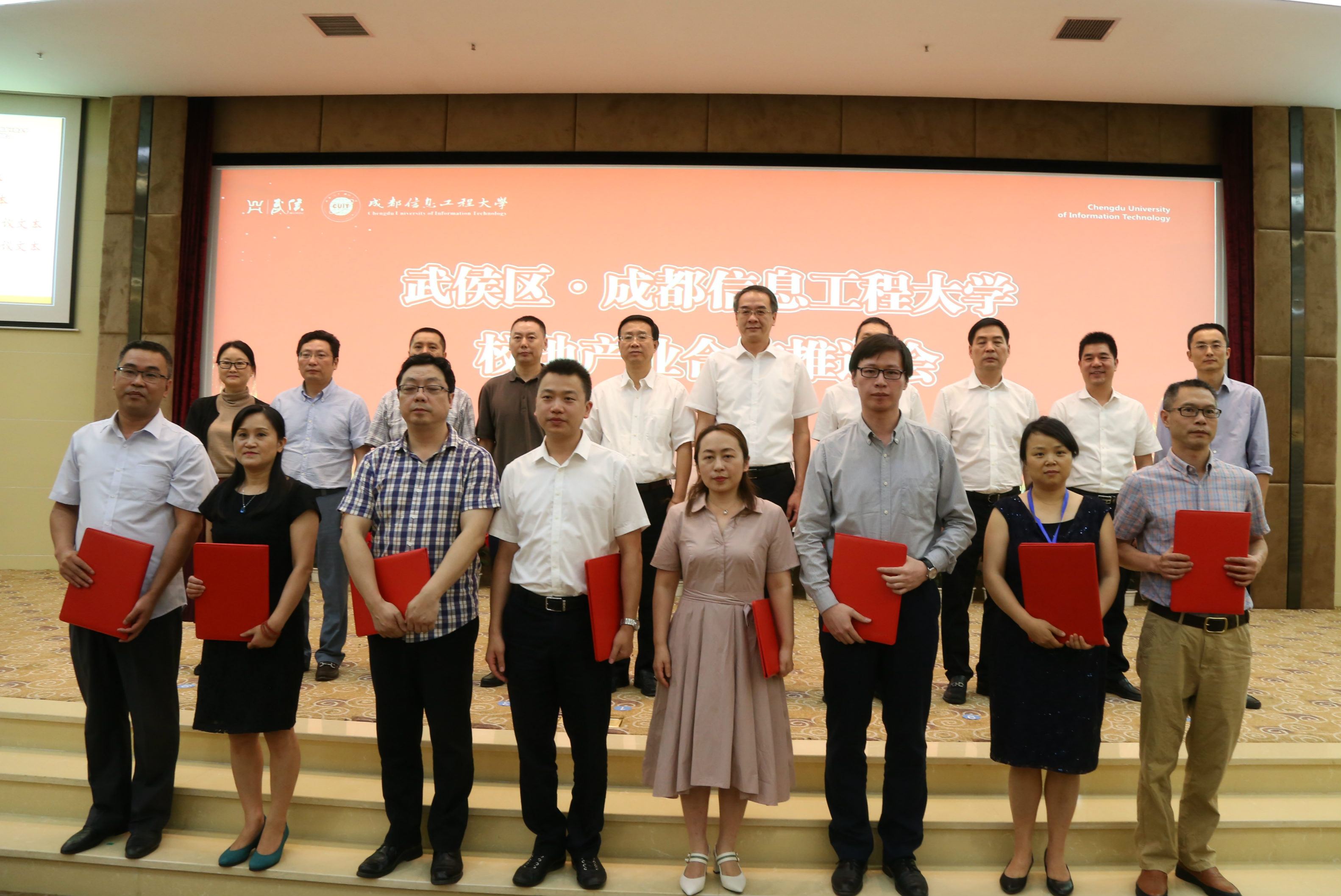 学校电子工程学院院长杨玲、通信工程学院院长李英祥、软件工程学院博士王亚强、网络空间安全学院院长李飞在推进会现场介绍了学院整体情况、科研成果以及与地方合作的情况;武侯区企业代表成都京东、成都佳发安泰科技代表介绍了企业整体概况和合作需求等情况。