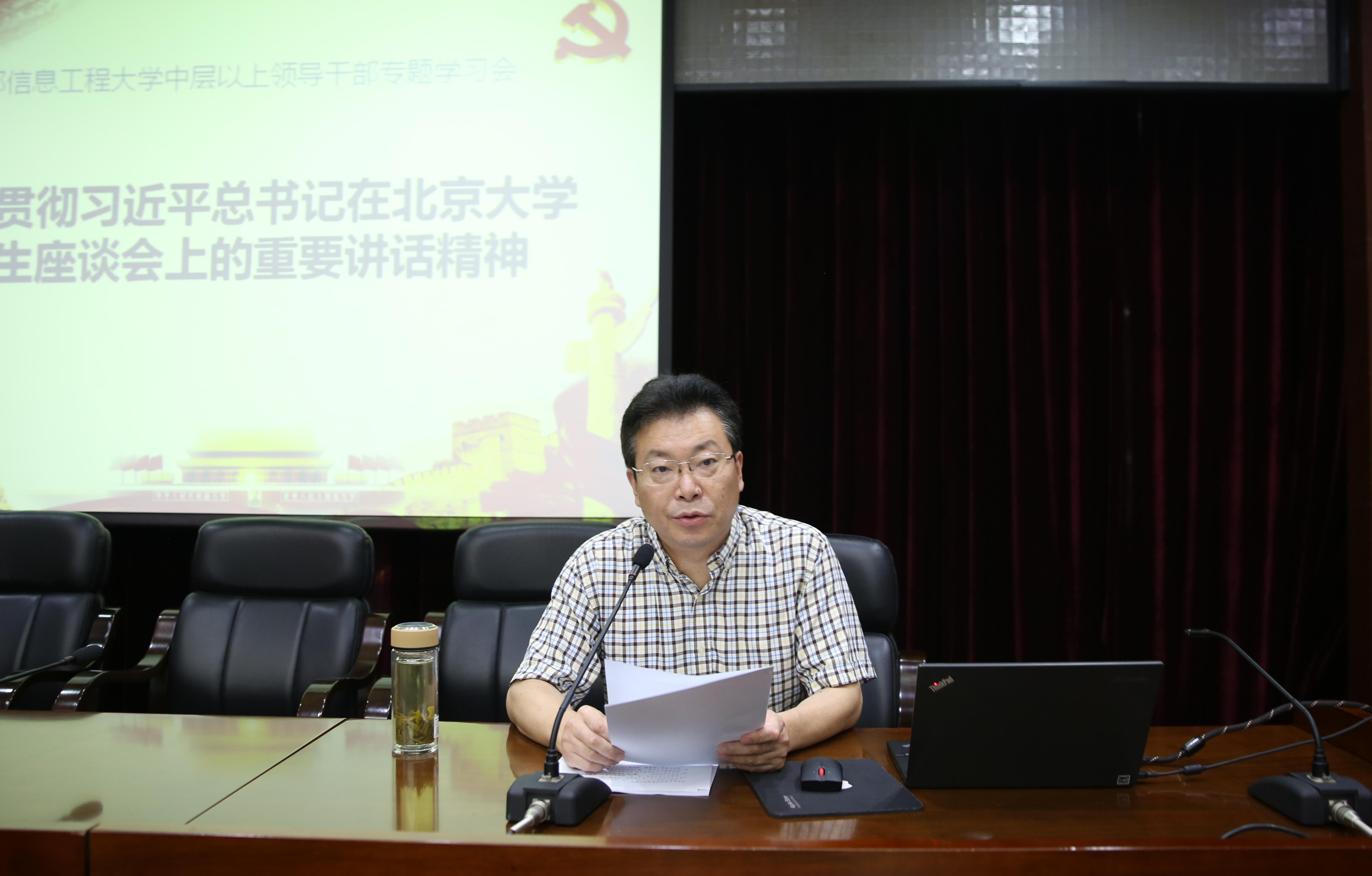 【本网讯】5月17日下午, 学校召开深入学习贯彻习近平总书记在北京大学师生座谈会上重要讲话精神专题学习会。全体校领导、全体副处级以上领导干部参加了学习。学习会由学校党委书记周激流主持。
