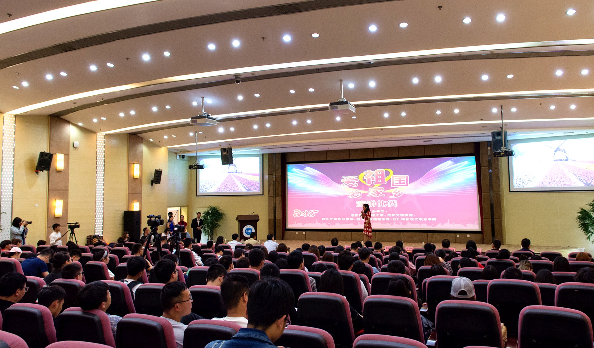【本网讯】4月18日,“爱祖国 爱家乡”演讲比赛在学校国际会议厅举行。来自成都文理学院、四川大学锦城学院、四川艺术职业学院、四川华新现代职业学院和我校的五所高校参赛民族学生齐聚学校航空港校区。四川省教育厅宣思处副处长、新疆内派教师四川协调站站长李嘉东,参赛高校的学工部领导,学校副校长于世祥,相关职能部门负责人,学院党总支书记代表和四川省内派教师代表等参加了活动。