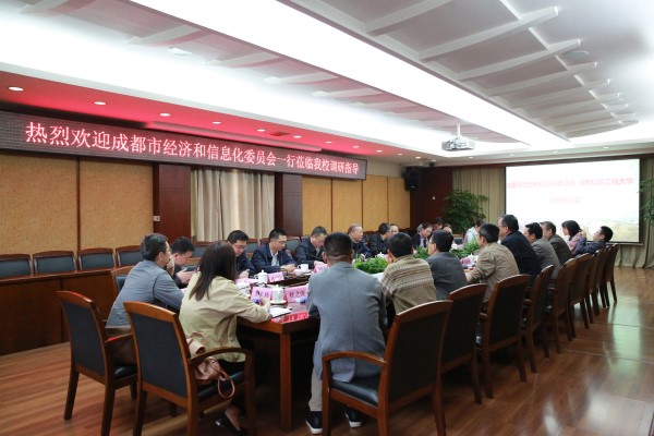 【本网讯】4月13日上午,成都市经济与信息化委员会巡视员刘勇、成都市国家保密局局长周海灵、成都市密码管理局局长李继刚以及成都市软件产业发展中心、成都市信息系统与软件测评中心等部门负责同志来我校就商用密码测评能力建设、商用密码产品检测及应用测评工具研发等内容进行调研。学校校长余敏明,科技处、网络空间安全学院负责人以及网络空间安全学院硬件安全团队相关人员参加了座谈会。 座谈会由学校副校长马洪江主持。