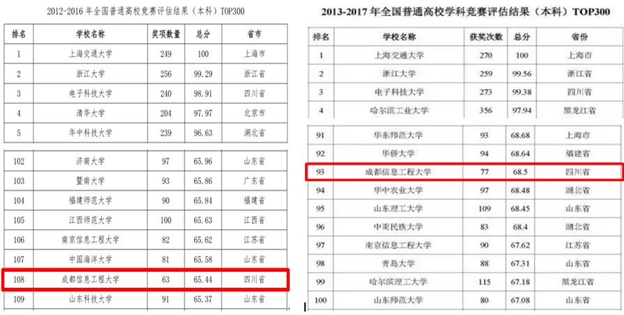我校在2013—2017年中国高校创新人才培养暨学科竞赛评估结果中进步15名,跻身全国百强