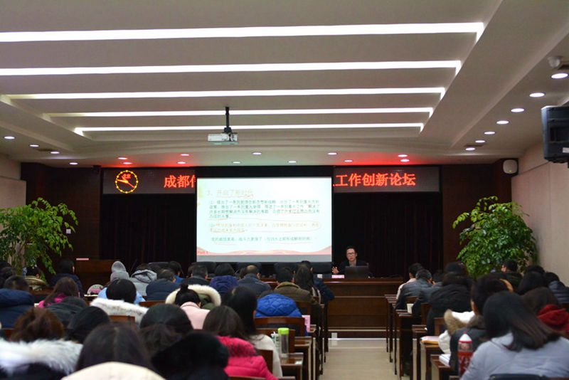 【本网讯】为深入学习贯彻党的十九大会议精神,贯彻落实中共中央、国务院《关于加强和改进新形势下高校思想政治工作的意见》、教育部《普通高等学校辅导员队伍建设规定》和学校2017年党建及思想政治工作会议精神,进一步推进新形势下我校学生工作,加强和改进大学生思想政治教育,创新学生工作的理论与实践,1月10日上午,学校在行政楼一会议室召开第十届学生工作创新论坛。学校副校长于世祥,相关职能部门负责人,各学院党总支书记(副书记),全体辅导员老师等约150余人参加了论坛。论坛由学生工作部部长戴丽红主持。