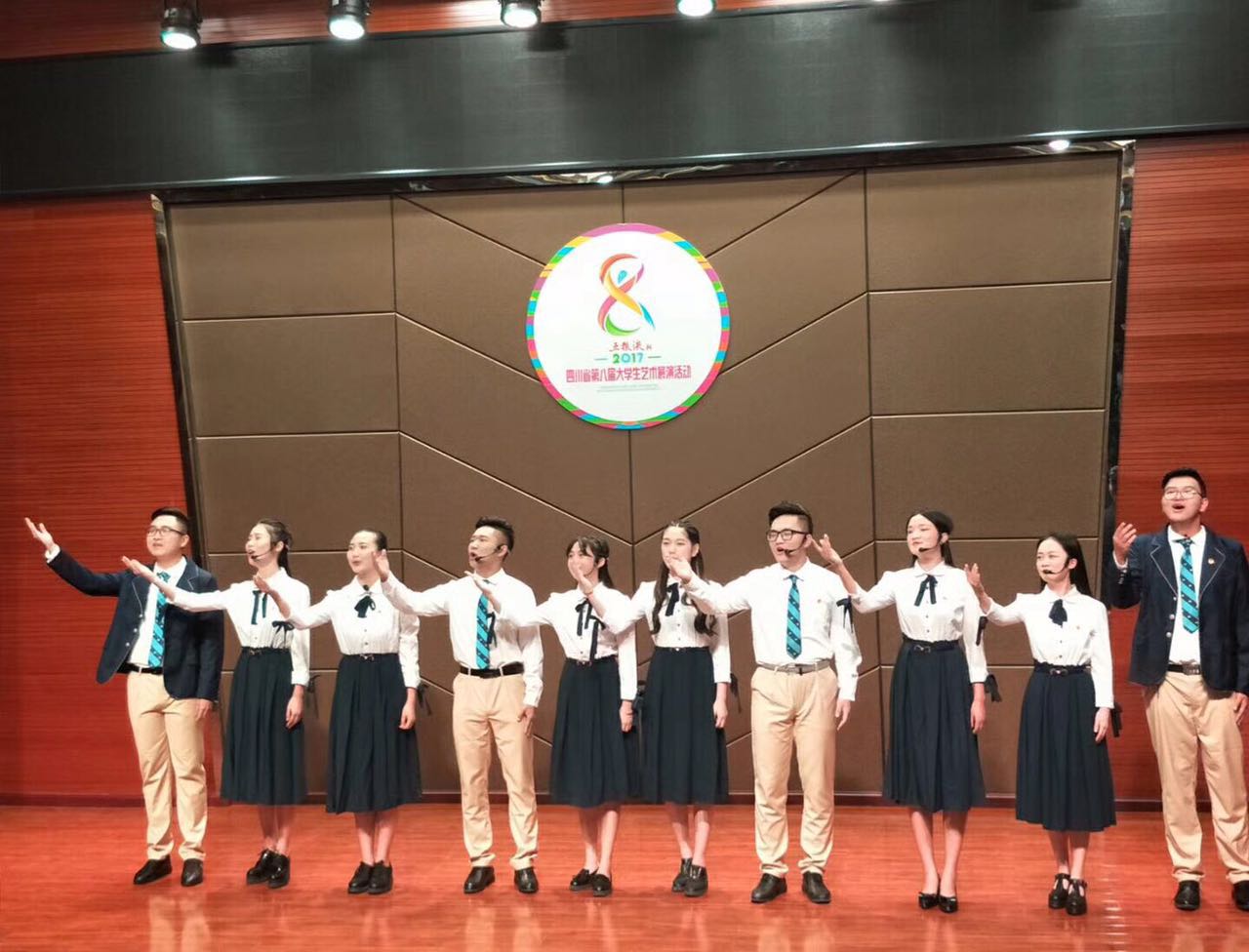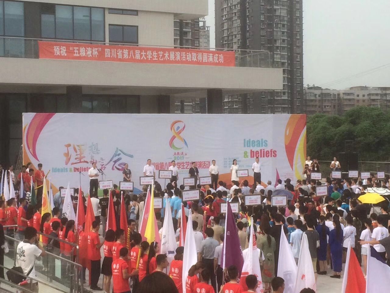 四川省大学生艺术展演活动是规格高、规模大、影响广的大学生艺术盛会,每三年举办一届,本届展演活动以“理想与信念”为主题,展演分为艺术表演类、大学生艺术实践工作坊、艺术作品类、高校艺术教育科研论文报告四大类。活动从启动到闭幕历时10个月。学校对本届展演活动予以了高度重视,校团委结合展演有关要求,于去年下半年启动各项准备工作。数月来,校团委一方面通过学校第八届大学生文化艺术节各项活动和文化艺术学院艺术设计类专业,进行了书法美术摄影和论文报告等展示类作品的征集、遴选和指导完善;另一方面邀请校内外相关领域专家、老师,结合我校实际进行表演类的作品创作编排,担任节目的指导教师,对从大学生艺术团、艺术类学生社团中选拔出的学生演员进行长达数月的艰苦训练,并克服了天气、时间和场地等带来的诸多不利影响。