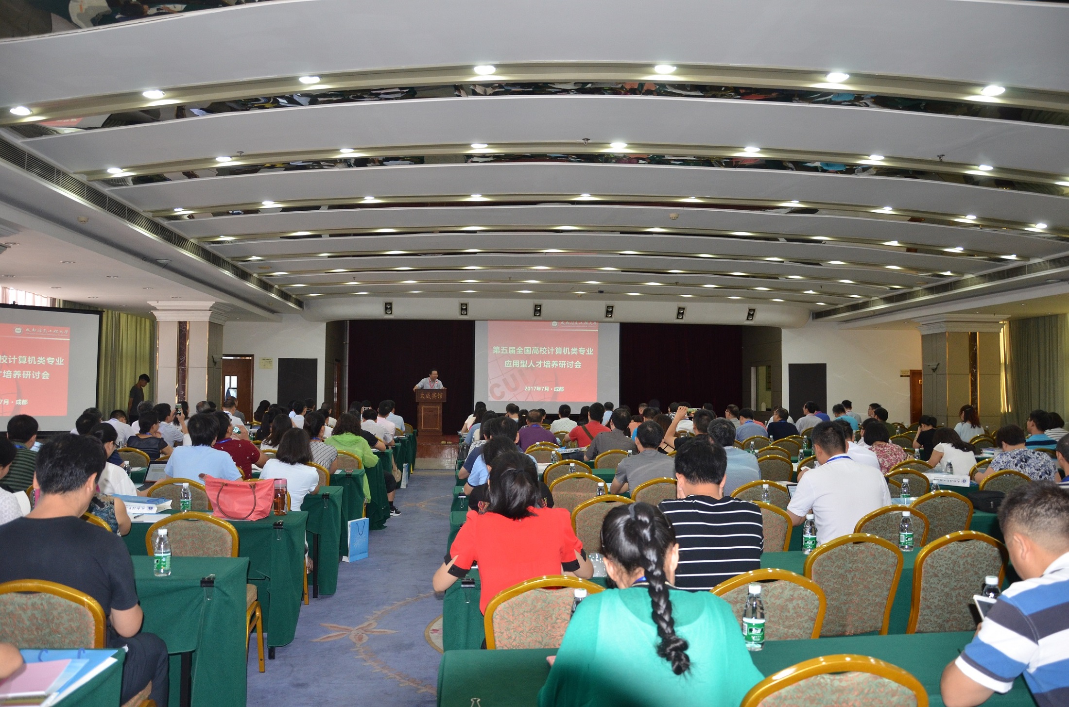 【本网讯】7月27日,由教育部高等学校计算机类专业教学指导委员会、全国高等学校计算机教育研究会与高等教育出版社主办,我校承办的“第五届全国高校计算机类专业应用型人才培养研讨会”在成都市太成宾馆隆重开幕。我校党委书记周激流教授,教育部高等学校计算机类专业教学指导委员会副主任蒋宗礼教授,国家级教学名师王万良教授,多位教指委委员以及来自全国50余所高校教师代表100余人参加了开幕式。开幕式由我校计算机学院魏维教授主持。