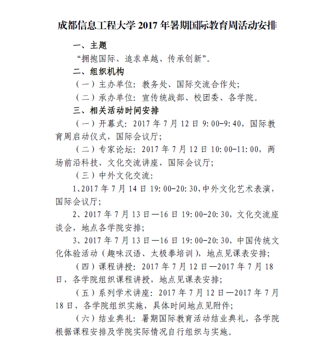 2017年暑期国际教育周安排了丰富多彩的项目,欢迎广大师生积极参与,拥抱国际,融享未来。