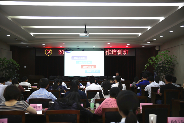 5月17日,2017年高校舆情信息工作培训班开班仪式在我校航空港校区行政楼一会议室举行。悟空官方网站党委副书记敬枫蓉出席开班仪式。来自广西、四川等36所高校负责舆情信息工作的教师参加了此次培训。开班仪式由我校宣传部副部长丁恒康主持。
