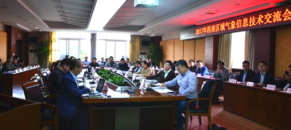 【本网讯】4月8日,2017年西南区域气象信息技术交流会在我校举行。我校党委副书记敬枫蓉,国家气象信息中心总工程师沈文海,中国气象局信息化领导小组办公室常务副主任曾沁,西南区域各气象部门领导及业务骨干参加了本次会议。此外湖北、安徽、陕西、宁夏、内蒙古等气象部门相关领导及人员、华为技术有限公司、中科三清科技有限公司代表也受邀到会。会议由软件工程学院院长舒红平主持。