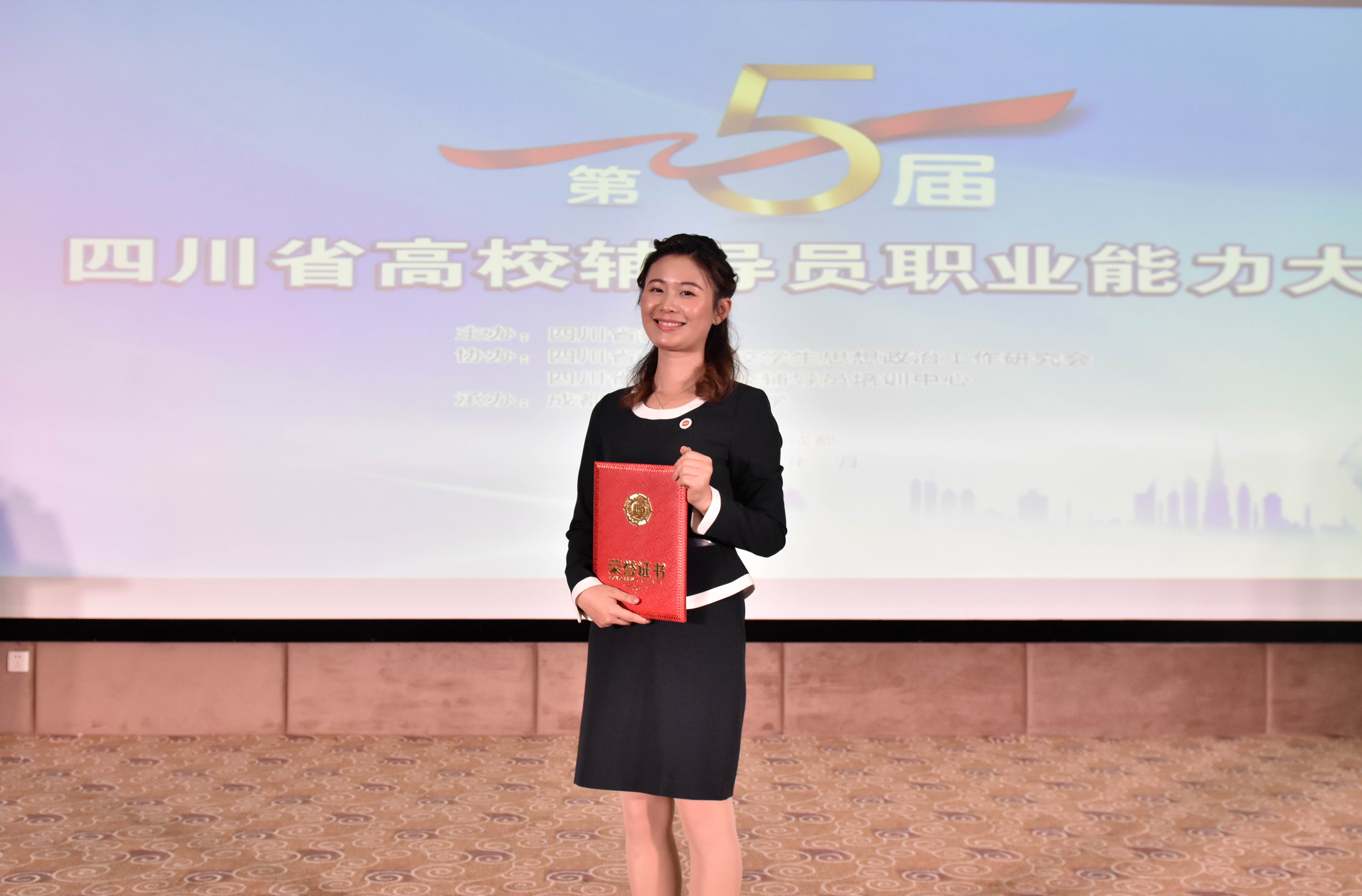 【本网讯】近日,“第三届四川省高校辅导员年度人物”评选结果揭晓,我校通信工程学院辅导员王燕名列其中。3月31 日 ,第三届全省高校辅导员年度人物评选颁奖典礼在我校隆重举行。