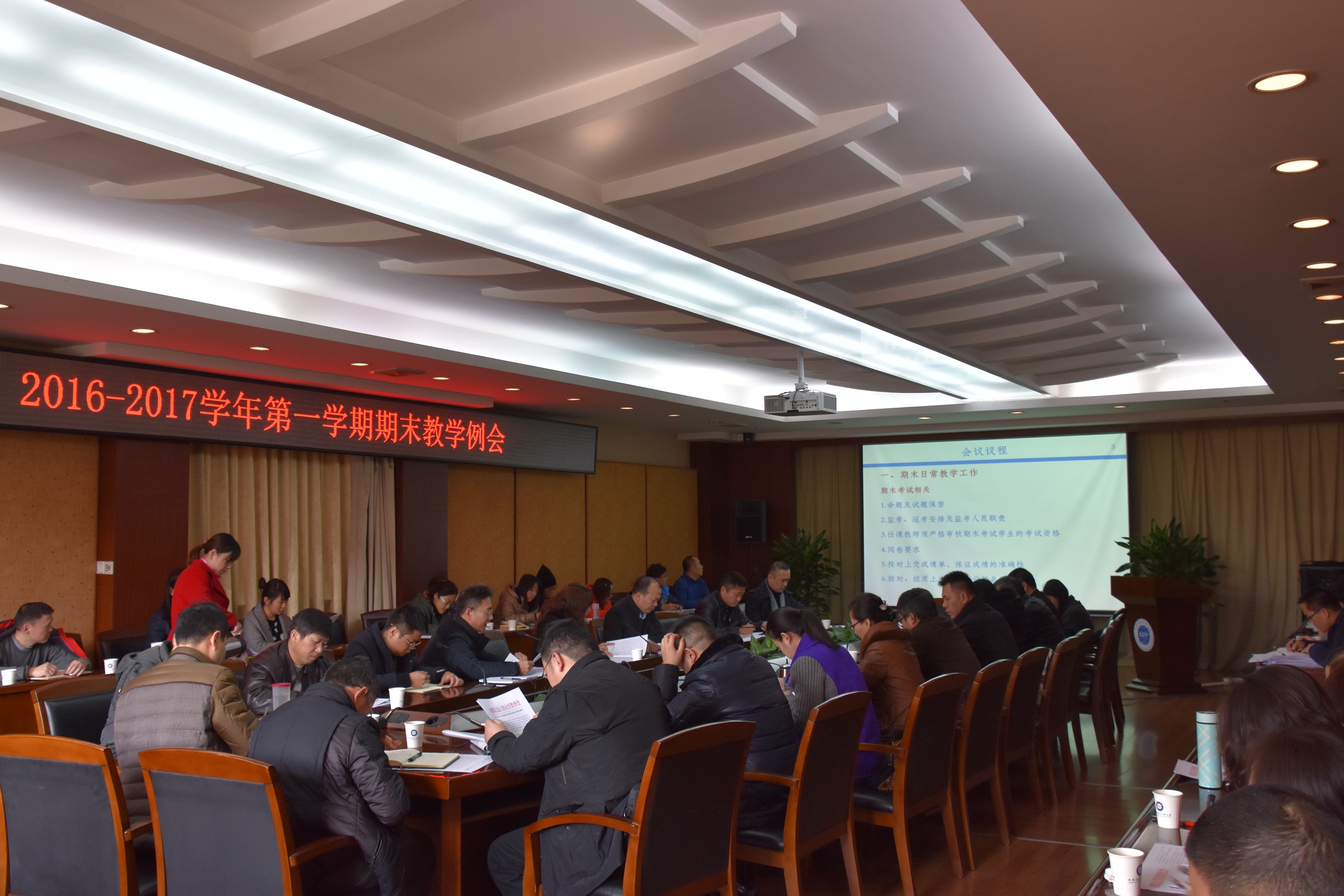 【本网讯】12月27日,学校在航空港校区第七会议室召开本学期期末教学工作例会,副校长何建新,各教学单位分管教学副院长(主任)、院长助理、教务办主任、教学秘书,教务处负责人及工作人员参加了会议。会议由教务处处长陈敏主持。