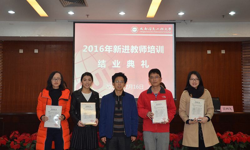 【本网讯】12月16日上午,2016年新进教师培训结业典礼在学校学术报告厅举行。学校党委常委、校长助理、组织部部长、人事处处长肖月强,教务处处长陈敏,学生工作处处长戴丽红,教师教学发展与评估中心主任吴四九、副主任何科奇,全体新进教师参加了典礼,典礼由吴四九主持。