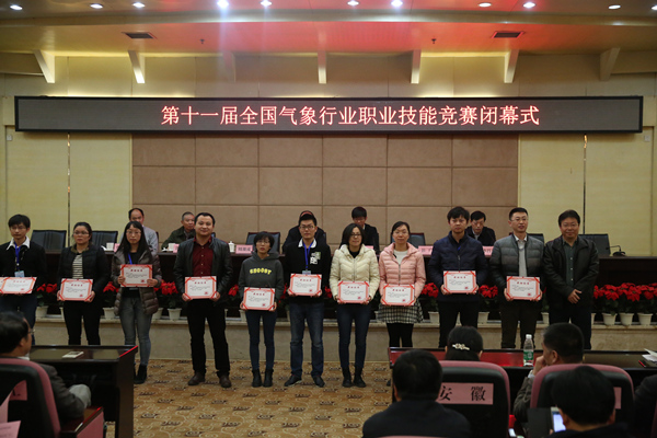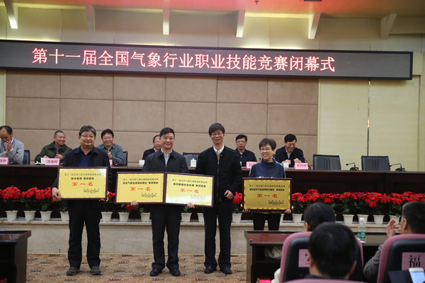 王劲松宣布获奖名单。来自河北省代表队的孟丽红综合能力突出,获得个人全能一等奖,来自河北省代表队的郭义涛和来自山东省代表队的干兆江获得个人全能二等奖;河北省代表队、云南省代表队和内蒙古代表队分获优秀团体奖前三名;非气象部门行业选手成绩最优者为来自新疆生产建设兵团气象局的曾桂婷;云南省代表队较上届竞赛进步了17名,摘得团体最快进步奖。