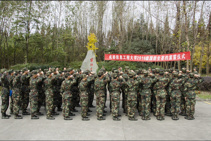 【本网讯】11月29日,悟空官方网站2016级国防生签约宣誓仪式在学校国防生林举行。学校副校长于世祥,学生工作处处长戴丽红,驻校选培办相关人员及部分高年级国防生代表参加了签约仪式。仪式由学生工作处副处长陈智勇主持。