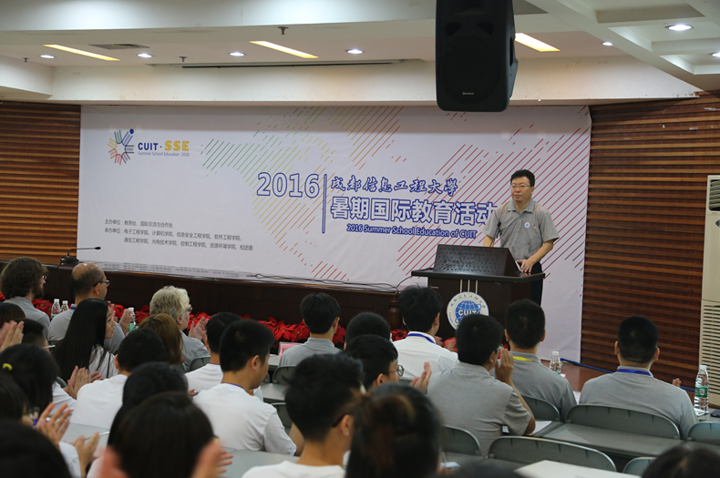 【本网讯】2016年7月13日,学校首届暑期国际教育活动(2016 summer school education of CUIT)在学术报告厅拉开序幕。来自美国、日本、意大利、加拿大、法国、塞尔维亚等国的8名授课专家与学校313名卓越计划专业学生齐聚一堂,共同开启此次活动。校长周激流出席启动仪式,致开幕辞并为授课专家颁发聘书。教务处、国际交流与合作处、宣传统战部、学生工作处、校团委等职能部门负责人,电子工程学院、计算机学院、信息安全工程学院、软件工程学院、通信工程学院、光电技术学院、控制工程学院、资源环境学院等8个学院负责人参加启动仪式,启动仪式由学校副校长何建新主持。