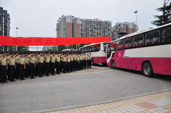 学校领导和在校国防生为毕业国防生送行