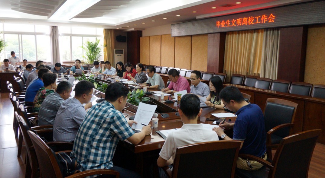 【本网讯】 6月13日下午,学校2016届毕业生文明离校工作会在行政楼第七会议室召开。学校副校长于世祥,相关部门负责人,各学院党总支书记、副书记,学生工作处相关工作人员参加了会议。会议由学生工作处处长戴丽红主持。