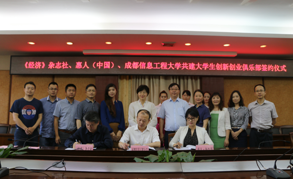 【本网讯】 6月7日,学校与《经济》杂志社、“惠人中国”共建大学生创新创业俱乐部战略合作协议签约仪式在学校行政楼第七会议室举行。《经济》杂志社社长兼总编辑陈志强、首尔支社理事河秀进、“因为有你”全国大学生创新创业大赛组委会秘书长刘璐、惠人新生活文化传媒有限公司总经理金贞玉,我校副校长兼创新创业工作领导小组副组长何建新,教务处、党政办公室、招生就业处、宣传统战部、校团委等学校创新创业工作组负责人参加了仪式。签约仪式由教务处处长、创新创业领导小组办公室主任陈敏主持。