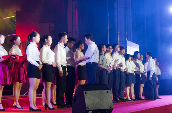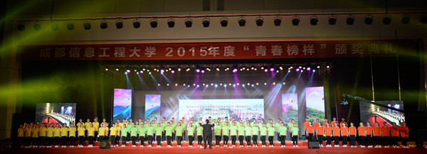【本网讯】5月31日晚,学校2015年度“青春榜样”颁奖典礼在航空港校区体育馆隆重举行。学校党委书记赖廷谦,校长周激流,副书记敬枫蓉,副校长余万伦、于世祥、贺盛瑜、何建新,火箭军驻校选培办王主任,校长助理肖月强、范广洲,全体中层干部,部分师生代表共3000余人参加了颁奖典礼。