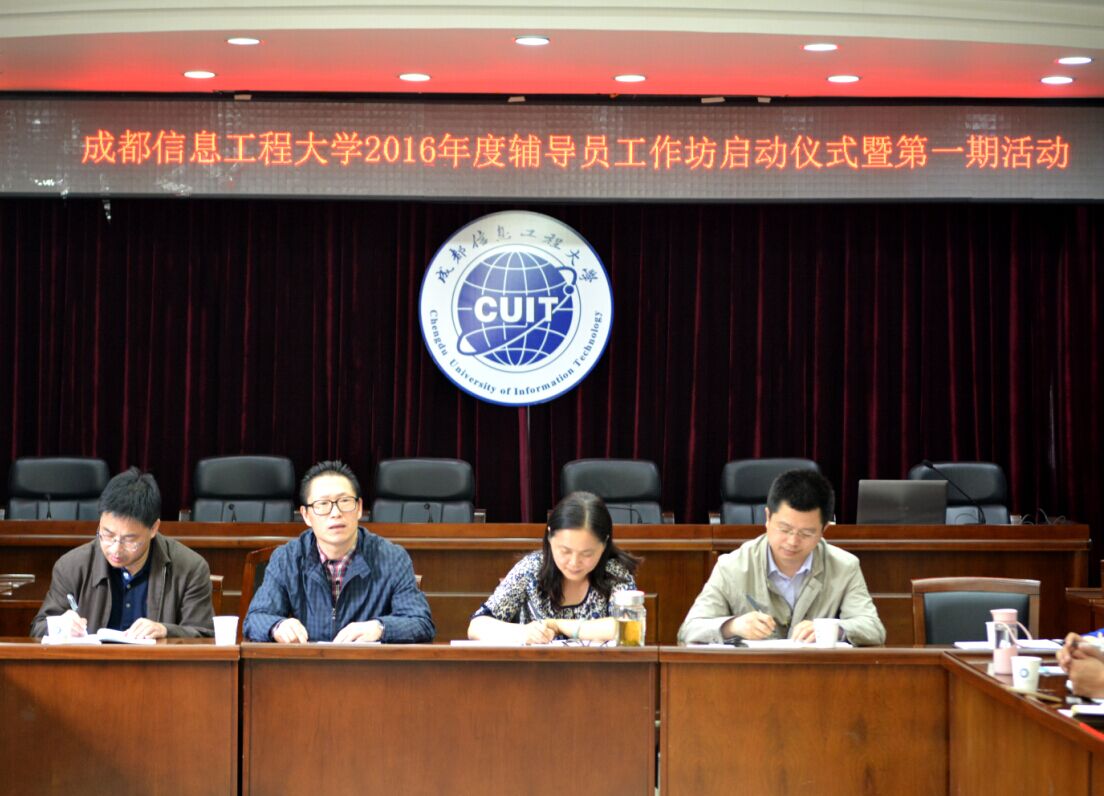 【本网讯】4月27日下午,学校2016年辅导员工作坊启动仪式在航空港校区一会议室举行。副校长于世祥、学生工作处副处长闵卫东、陈智勇,各学院30多名辅导员以及学生工作处相关人员参加了此次活动。活动由学生工作处处长戴丽红主持。