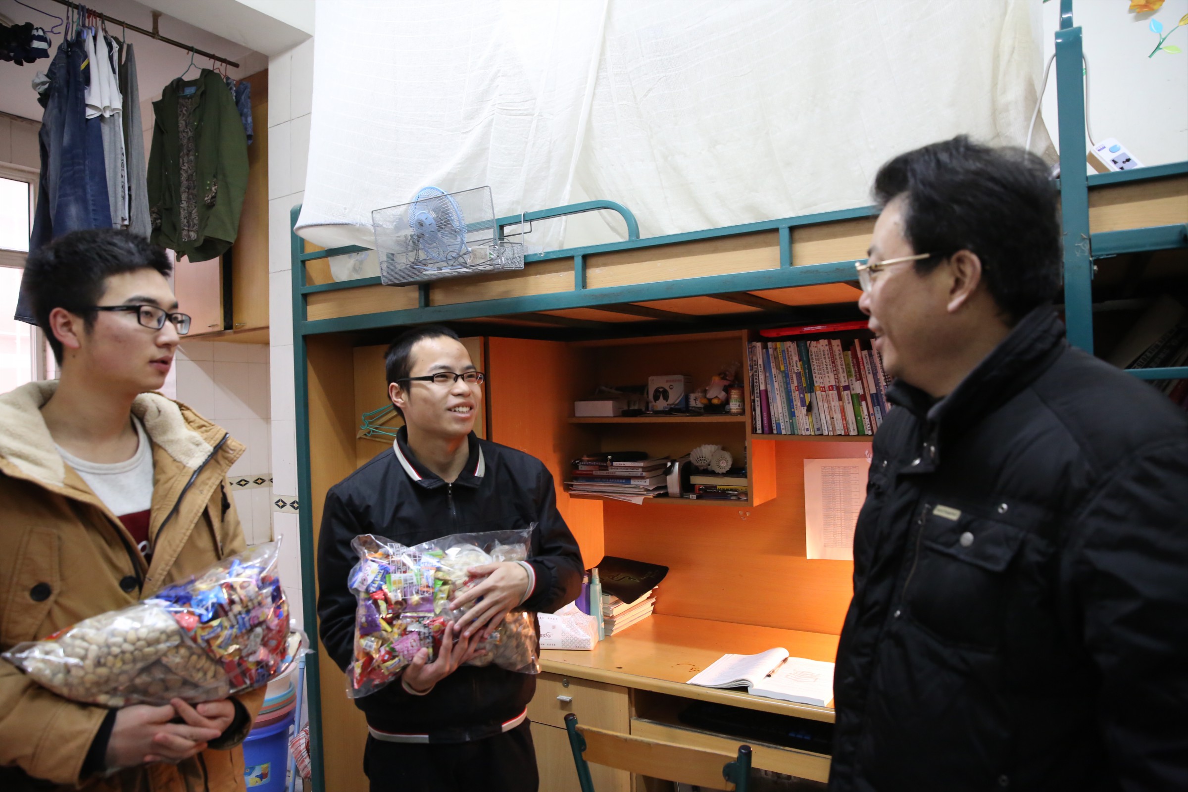 在学生宿舍,赖廷谦、周激流与留校同学们亲切交谈,详细询问了学生们的家庭情况、学习和生活方面存在的困难。赖廷谦、周激流叮嘱同学们,虽然远离家乡、远离父母,暂时不能团聚言欢,一定要记得给父母报平安,并通过同学们向家长表达学校的感谢和祝福;希望同学们充分利用寒假时间,劳逸结合,做一些有益的事情,过一个愉快而充实的春节;要求同学们严格遵守学校留校管理制度,牢固树立安全意识,注意防火、防盗与交通安全,确保大家过一个平安的寒假;勉励同学们克服困难,努力学习,心怀家国,时刻不忘当代大学生所肩负的责任,履行当代大学生的使命。赖廷谦、周激流表示,学校一直坚持以学生为本,全力为同学们做好教育、管理和服务工作,学校将永远是同学们的家。