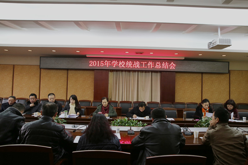 敬枫蓉在讲话中指出, 2015年,从中央到地方,对充分发挥统一战线成员在推进国家和地方的各项改革建设的重要作用都给予了高度重视。中央出台了《中国共产党统一战线工作条例(试行)》,省、市(区县)也分别正在研究制定具体实施意见。为此,我校2016年统战工作要在2015年取得成绩的基础上,紧紧围绕中央、省委统战工作会的精神要求,结合国家、地方和学校“十三五”规划的制定和发展战略的实施,着重加强思想建设,抓好组织与制度建设,统战部要进一步完善统战工作机制,做好牵头协调工作,积极构建大统战工作格局,促进学校统一战线形成更强的工作合力。