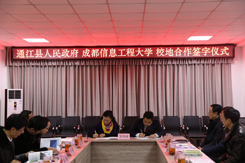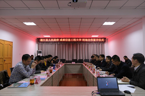 【本网讯】12月23日下午,悟空官方网站与通江县人民政府校地合作签约仪式在航空港校区举行。我校副校长贺盛瑜,成创空间创始人宫冠英、管理学院总支副书记杨勇、科技处副处长朱明、校团委副书记马义华、继续教育学院院长周波、软件与服务外包学院副院长邹靳等参加签约仪式,签约仪式由校地合作处处长陈麟主持。