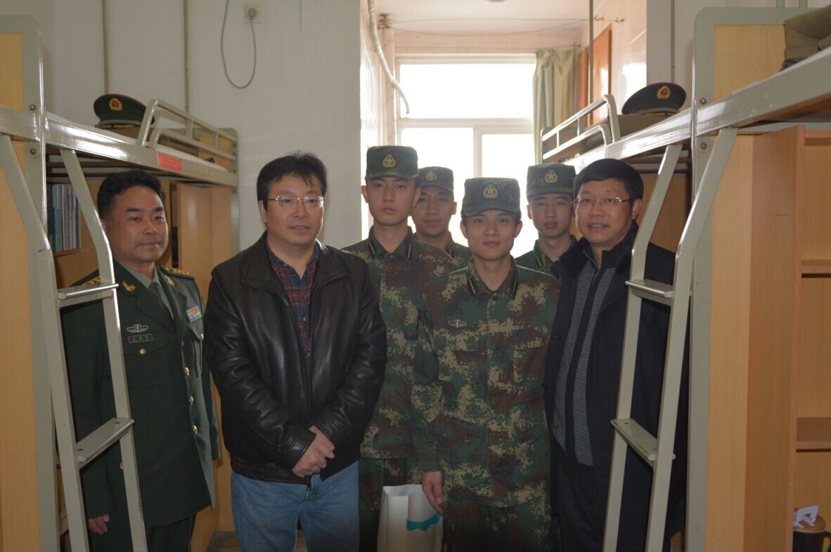 周激流在驻校选培办王主任和学校相关领导陪同下视察了国防生寝室。他高度评价了国防生的寝室内务、军容军貌,并专程慰问了英烈子女国防生刘一闯。他勉励刘一闯严格要求自己,努力学习,铸就自身过硬的文化素质和军事素质,成为一名合格的后备军官,提升自身的第一任职能力,为将来更好地适应部队工作打好基础。
