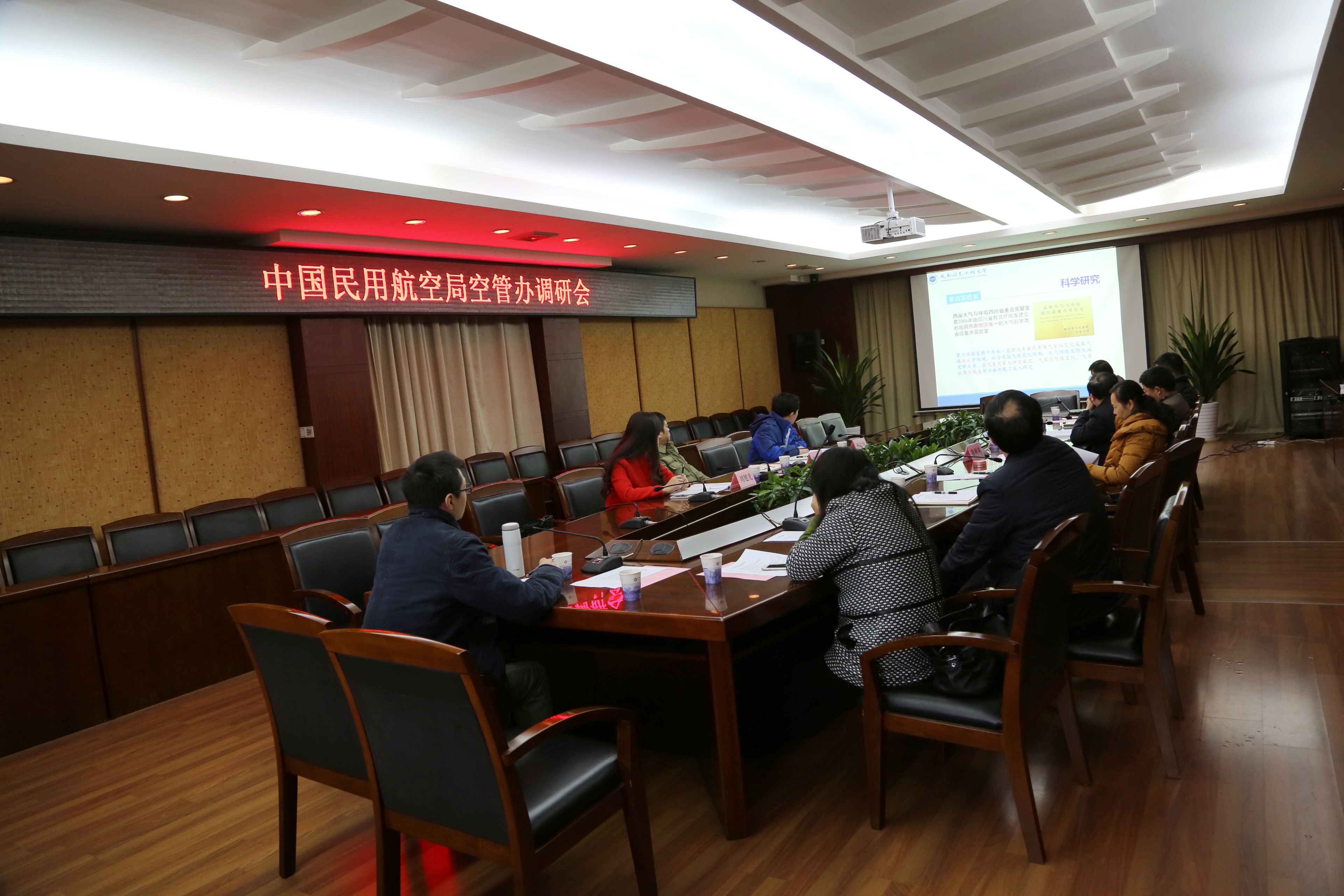 【本网讯】12月21日,中国民用航空局空管行业管理办公室张瑞庆副主任一行来我校进行调研。学校党委副书记敬枫蓉、副校长何建新,校长助理(软件工程学院院长)舒红平、科技处、大气科学学院、电子工程学院、通信工程学院、资源环境学院、信息安全学院等相关部门领导与张瑞庆一行在第七会议室进行了交流,调研会由何建新副校长主持。