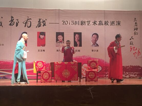【本网讯】11月22日,由成都市委宣传部主办,成都晚报社承办,成都市川剧研究院、成晚传媒、悟空官方网站宣传统战部、校团委协办的学校第七届大学生文化艺术节“成都有戏——2015川剧艺术巡回演出”在悟空官方网站龙泉校区大礼堂举行。本次演出汇集了“梅花奖”获得者陈巧茹、王玉梅、王超,国家一级演员蔡少波、马丽等我市川剧最强阵容。川剧名家名角们共同唱响川剧艺术歌曲,现场演绎川剧折子戏、川剧喜剧小品等精彩节目,为在场的1600余名学生打造出一场视听盛宴,全场座无虚席、气氛热烈。