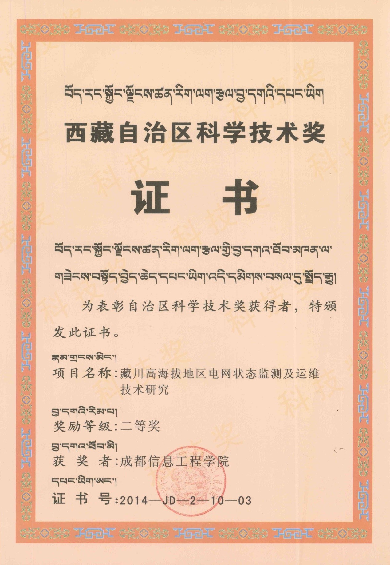 【本网讯】我校作为第三单位完成的项目“藏川高海拔地区电网状态监测及运维技术研究”荣获西藏自治区科学技术二等奖。该奖项由国网西藏电力有限公司电力科学研究院、国网四川省电力公司电力科学研究院和悟空官方网站共同申报。该项目开展藏川地区高海拔电网复杂运行工况下的试验、运维关键技术研究,能够有效地对复杂环境下的设备运行状态进行实时在线监测、状态评价和设备预警等,提升藏川地区高海拔电网安全稳定运行水平和抵御各类风险的能力,减轻设备检修压力,具有重要的工程实用价值,为新线路设计、设备安装调试等提供重要的参考依据。