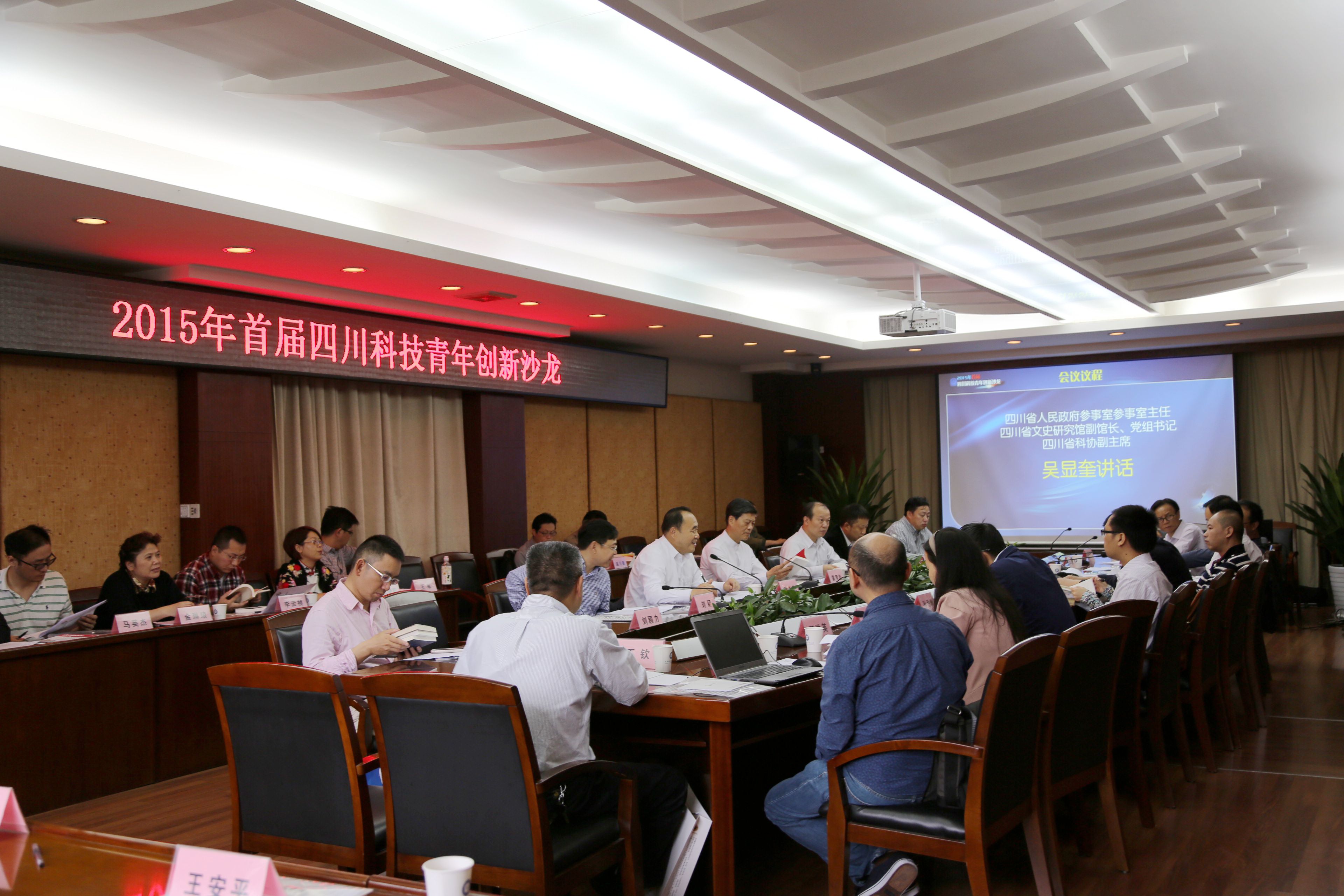 【本网讯】10月18日,由四川省科学技术协会主办,悟空官方网站承办的2015年首届四川科技青年创新沙龙在我校举办。本次沙龙的主题是“创新驱动发展”。四川省人民政府参事室主任、文史研究馆副馆长、党组书记,四川省科协副主席,第三届青科奖获奖者,学校校友吴显奎;四川省科协党组书记、副主席吴群刚;学校副校长何建新等出席沙龙并与青年科技工作者进行交流。中国青年科技奖获奖者、四川省青年科技奖获奖者、部分青年科技工作者代表参加了沙龙活动。沙龙由四川省科协党组成员、副主席黄竞跃主持。