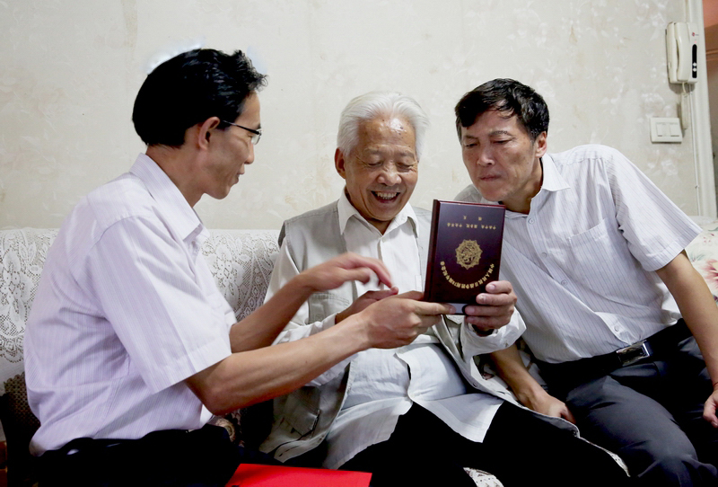 9月3日是中国人民抗日战争暨世界反法西斯战争胜利70周年纪念日。2日下午,校党委书记赖廷谦、副书记倪鸣代表学校走访慰问了我校张玉昆、王明山、王维、许荣耀、张占义等抗战老战士老同志及王健同志的家属,按照中央和省委统一安排,向他们发放“中国人民抗日战争胜利70周年”纪念章,并代表全校师生向抗战老战士们致以崇高敬意和诚挚问候。