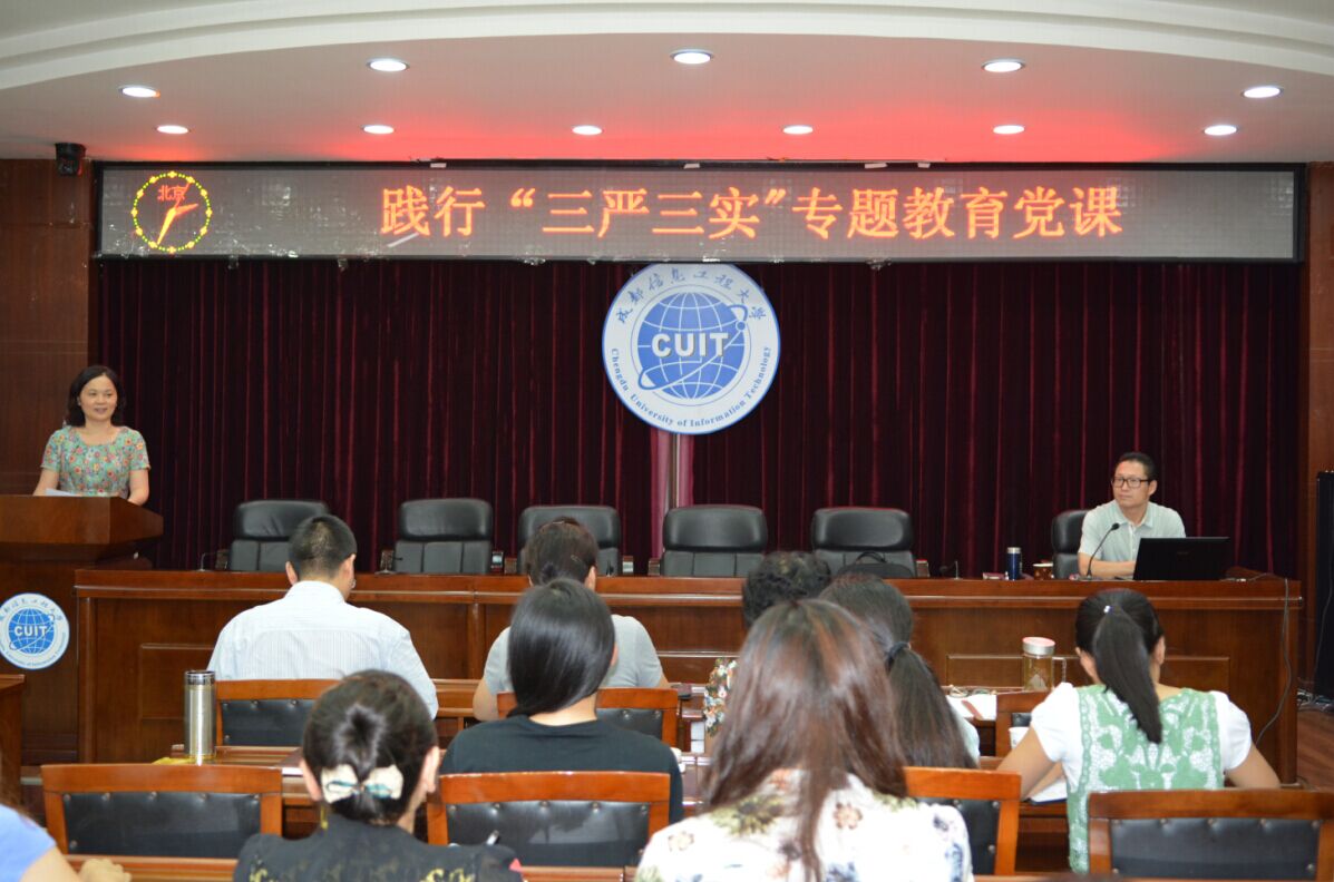 【本网讯】7月3日下午,学校副校长于世祥在第一会议室作了题为“践行‘三严三实’,科学谋划学生工作”的专题党课宣讲,学生工作处、校团委全体党员,资产管理处、计算中心、应用数学学院部分党员参加了党课学习。党课由学生工作处处长戴丽红主持。