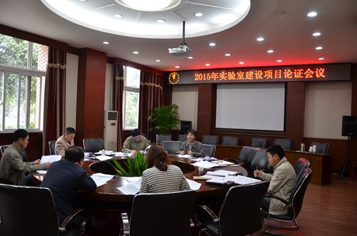 【本网讯】4月23日,学院2015年实验室建设项目论证会议在行政楼第六会议室召开,学院副院长何建新、教务处处长陈敏、副处长何晋及论证专家小组成员参加了会议。