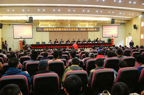 会议首先举行了“高校图书馆向社会开放(试点)”活动启动仪式。省教育厅副巡视员周雪峰、成都市教育局副局长赖石梅分别代表省、市对高校图书馆向社会开放表示了祝贺和支持。成都信息工程学院院长周激流向全省高校图书馆代表表示热烈的欢迎,祝高校图书馆事业越来越红火。四川省高校图工委副主任赵锦棻宣读第一批试点学校图书馆名单,包括我院在内的11所成都地区高校图书馆成为首批开放试点院校。成都高校图书馆代表西南交大馆长高凡进行了发言,她表示高校馆向社会开放既是公众热切的需求,也是高校馆发挥更大价值的好事,相信在政府及相关部门的大力支持和图书馆自身努力下,将会有更多的图书馆加入开放的行列。