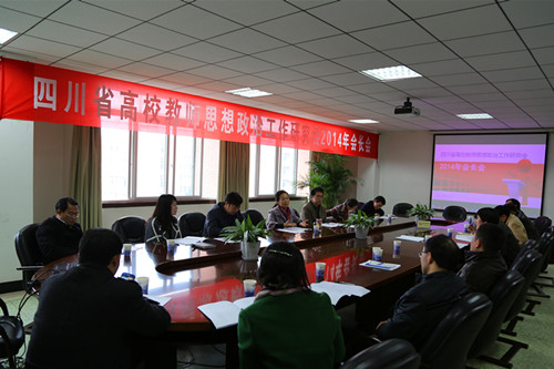 【本网讯】11月21日,四川省高校教师思想政治工作研究会2014年会长会在我院召开,来自省内16所高校的宣传部门负责人参加了会议。会议由研究会会长、学院党委副书记敬枫蓉主持。